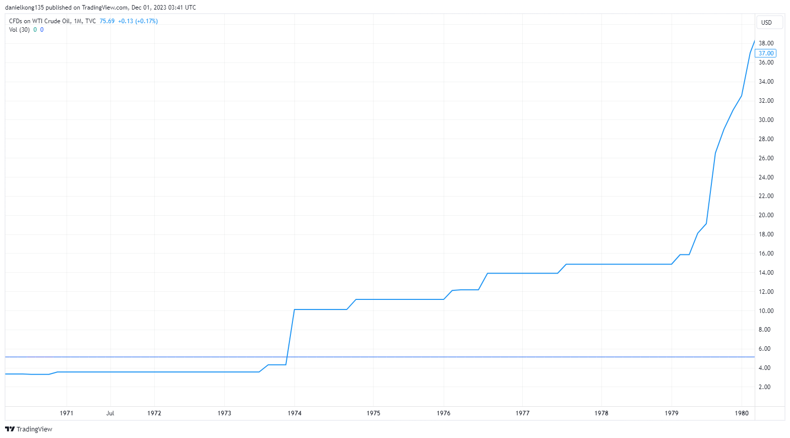 This influence was evident during the 1973 OPEC oil embargo, which led to a significant energy crisis and a dramatic rise in oil prices. Prior to the embargo, oil was priced at about $2.90 per barrel, but by January 1974, it had surged to $11.65 per barrel, showcasing a substantial fourfold increase [4].
