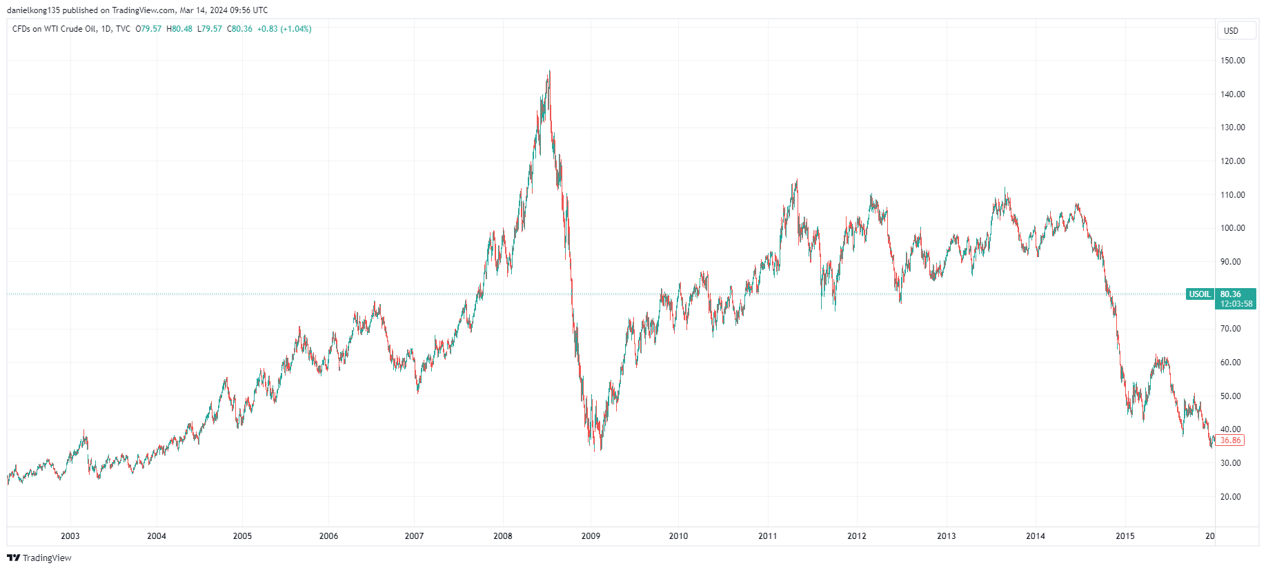 For instance, the global financial crisis of 2008, and the Great Recession that followed, saw a significant drop in oil prices due to reduced industrial activity and transportation needs. Oil prices dropped from a high of $133.88 in June 2008 to $39.09 in February 2009 [2].