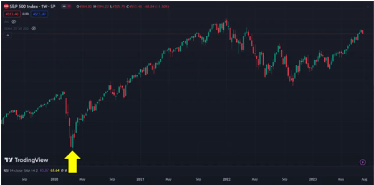 Case in point: During the COVID-19 recession, the S&P 500, which had just made a new high on 20 Feb 2020, suddenly fell by nearly 34% over a nail-biting one month, finally reversing course on 23 Mar.