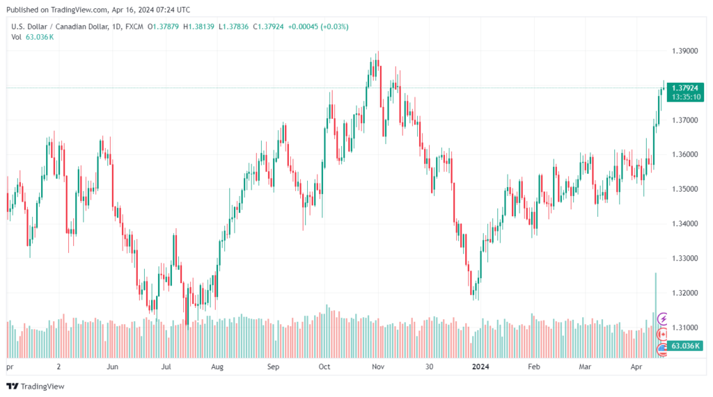 Geopolitical events, such as political stability, trade agreements, and global events, can impact investor sentiment and currency flows, thereby influencing USD/CAD. Political instability, trade tensions, and geopolitical conflicts can lead to uncertainty in the market, causing investors to seek safe-haven currencies like the US dollar. That might impact the value of the Canadian dollar relative to the US dollar, as the CAD has historically been a risk-on, cyclical currency which is influenced by global sentiment.
