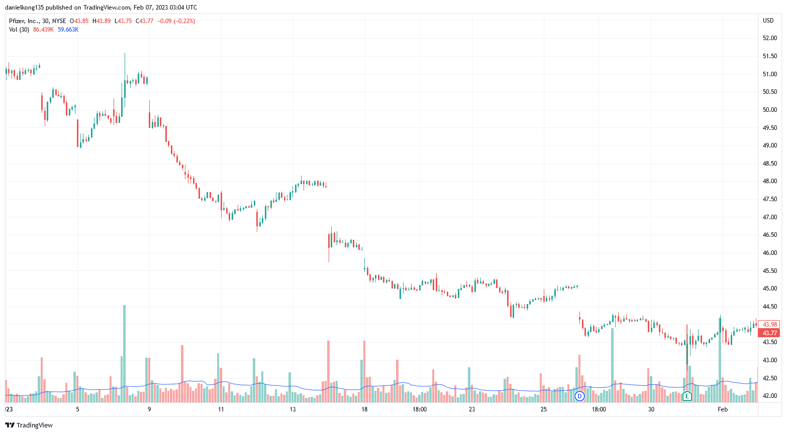 Figure 3: Pfizer price chart over the month of January 2023. Image obtained from Trading View.