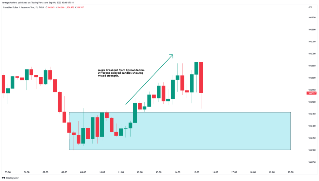 En cuanto a la fortaleza, el enfoque estaría en la fuerza del movimiento después de que el mercado se ha alejado de la zona de consolidación. Cuanto más fuerte sea el movimiento fuera de la consolidación, mayor credibilidad tendrá una zona.