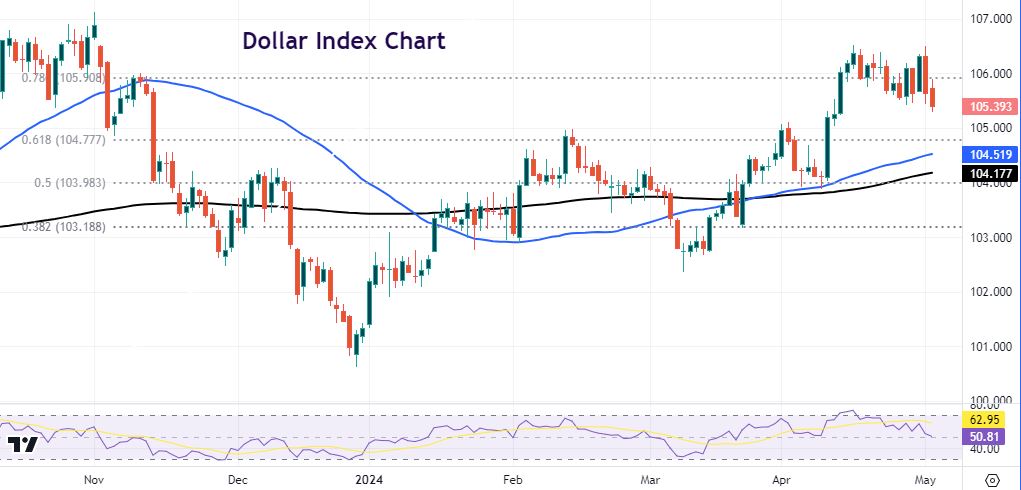 Yesterday, the DXY broke down from its recent range trading between 105.50 and 106.50. But another blockbuster report would mean markets start pricing out any policy easing this year. All things equal, that could push yields and the USD higher towards the recent highs at 106.50. Stocks and gold could sell-off some more with near-term support in both assets not far away.