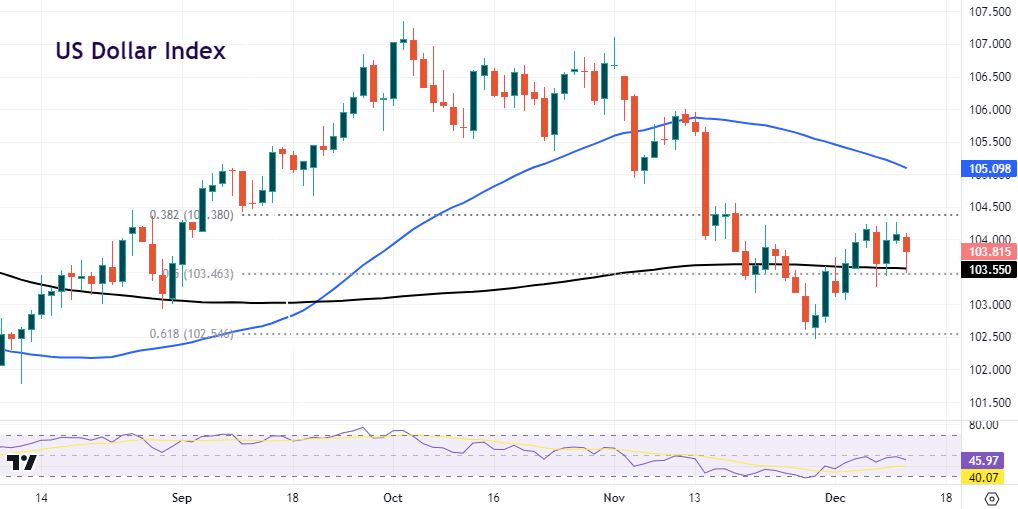 Chair Powell could continue his style of downplaying the dots and projections in his press conference after the statement. But it is widely predicted the Fed will say it is still not talking about policy easing any time soon. This could dent the recent risk rally and hurt gold further.